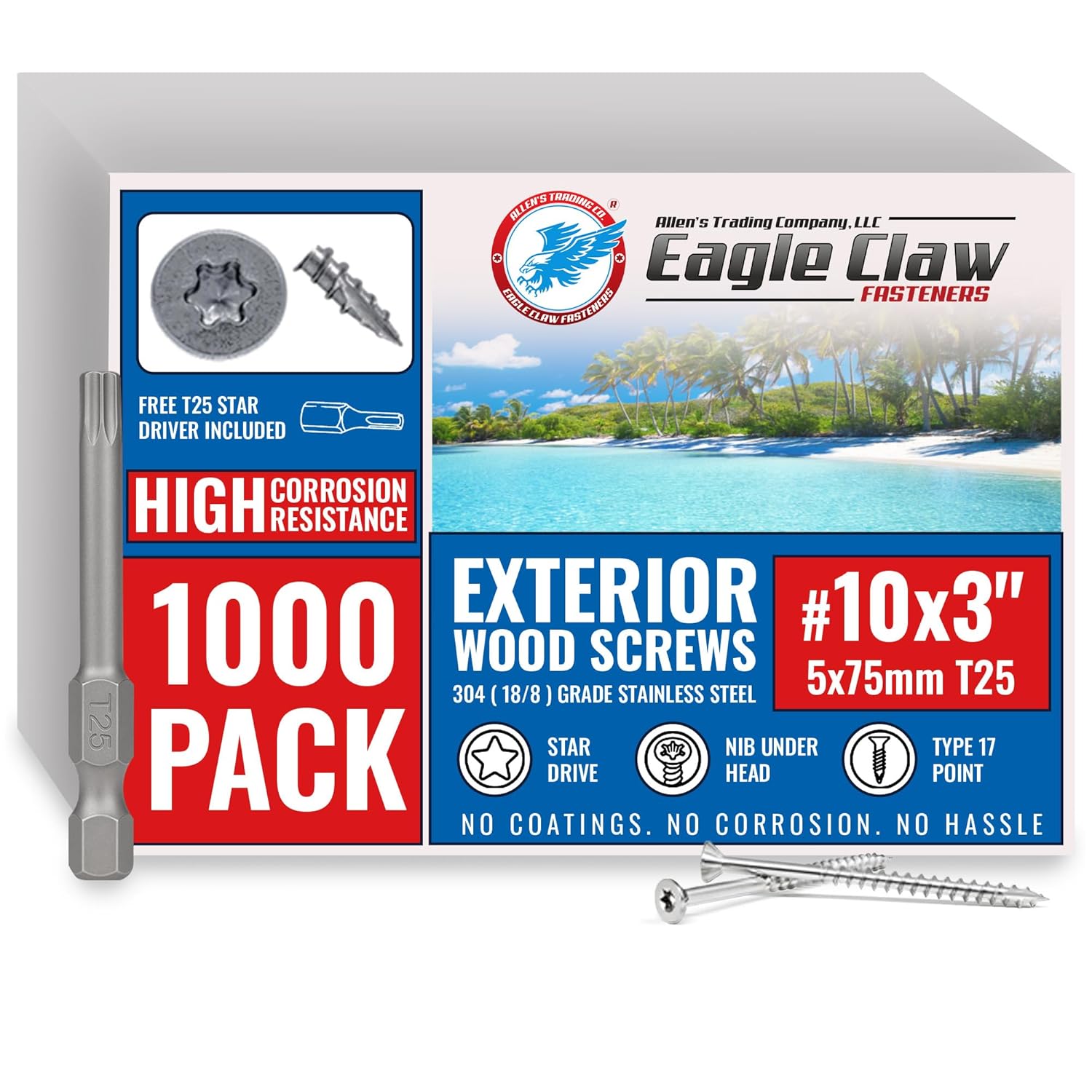 #10 x 3" 304 Grade SS Screws | 100, 350 & 1750 Packs